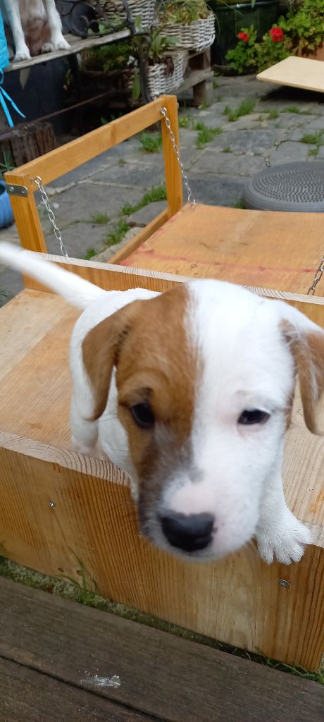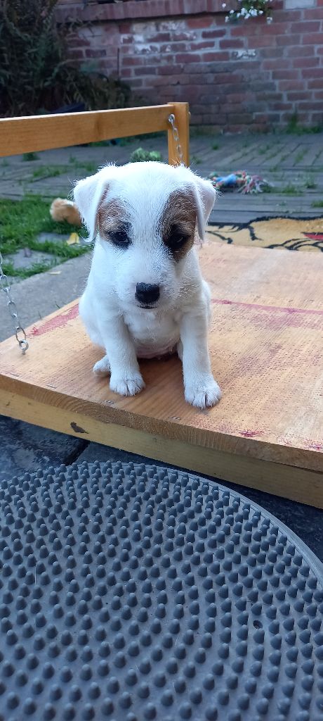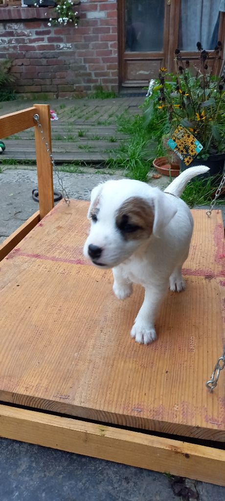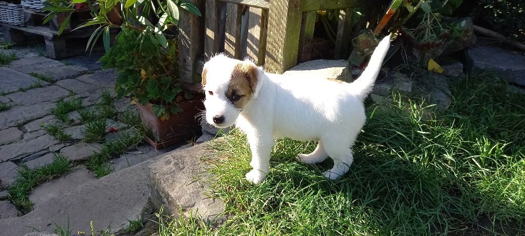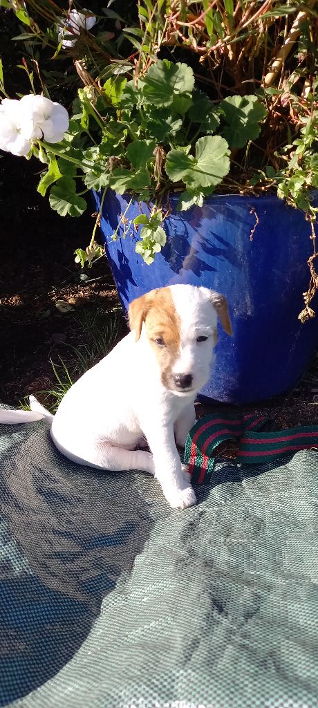 Le plus gros à la naissance, Tipico est un chiot super sympa et attachant, un monsieur bisous comme son papa ! Et comme lui, il a un joli demi masque et un corps tout blanc .